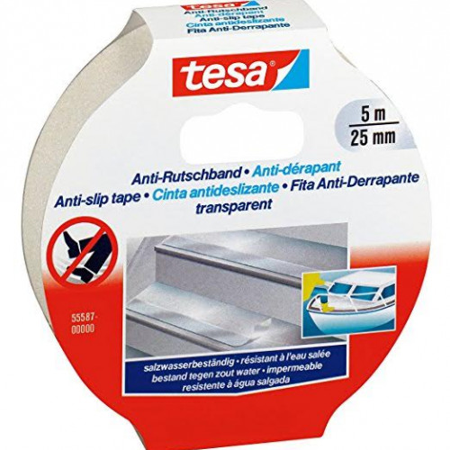 Cinta Adhesiva Antideslizante Para Pisos y Escaleras Incolora Transparente Resistente a la Intemperie en Rollo de 25mmX20Mts Marca TESA ALEMANA