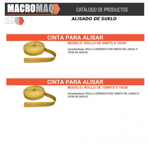 Cinta Alisadora de Suelos de Hormigón y Pavimentos de Poliéster en Rollos de 10cmx50mts Marca MACROMAQ MMQ