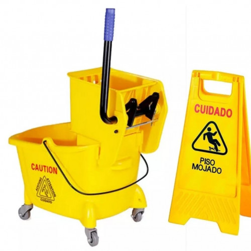 Cartel Plástico Plegable Tipo Carpa Con Advertencia de Cuidado Piso Mojado (Caution Wet Floor) Para Uso Limpieza de Espacios Públicos Marca Lembu