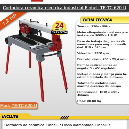 CORTADORA DE CERÁMICOS Y PORCELANATOS DE PIE CON MOTOR ELECTRICO MARCA EINHELL TE-TC 620 U
