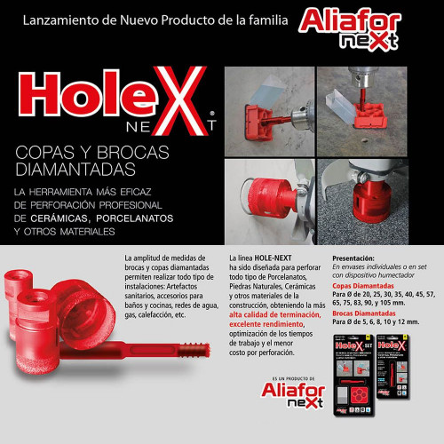 COPAS Y BROCAS DIAMANTADAS PARA PERFORAR PORCELANATOS MARCA ALIAFOR HOLE NEXT