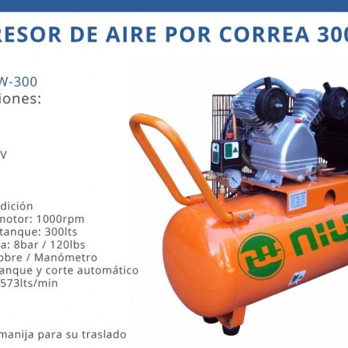 Compresor a Correa Bicilíndrico de 5,5HP Con Tanque 300Litros Marca NIWA