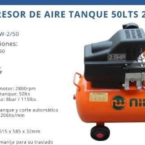 Compresor Directo Tipo Axial Sin Correa 2,5HP con tanque de 50 Litros Marca NIWA ANW-2/50