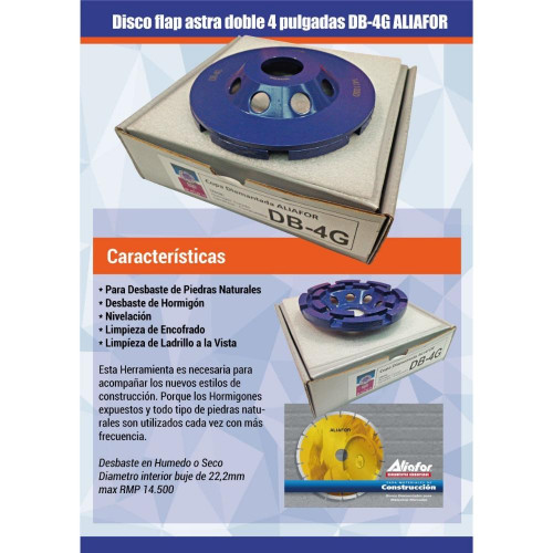 Copas Diamantadas Para Uso En Alisado De Hormigón (Concreto) Con Amoladoras Angulares de 4”-100mm Marca ALIAFOR DB4G