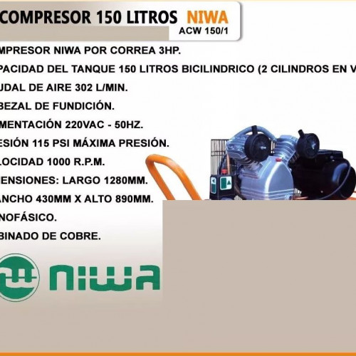 Compresor de Aire Trifásico NIWA ACW-150/3 3HP Trifásico 150 lts