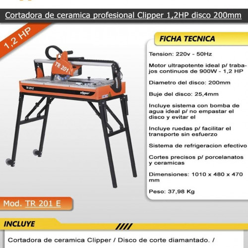 Cortadora de Ceramica Profesional Clipper 1,2 HP Disco 200 mm